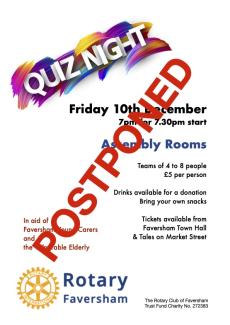 Unfortunately the Quiz Night on Friday 10th December has had to be postponed, but the Club hopes to be able to go ahead with it in the spring.